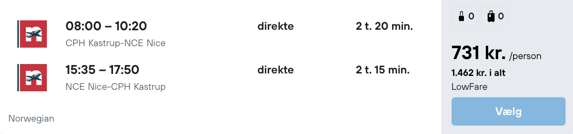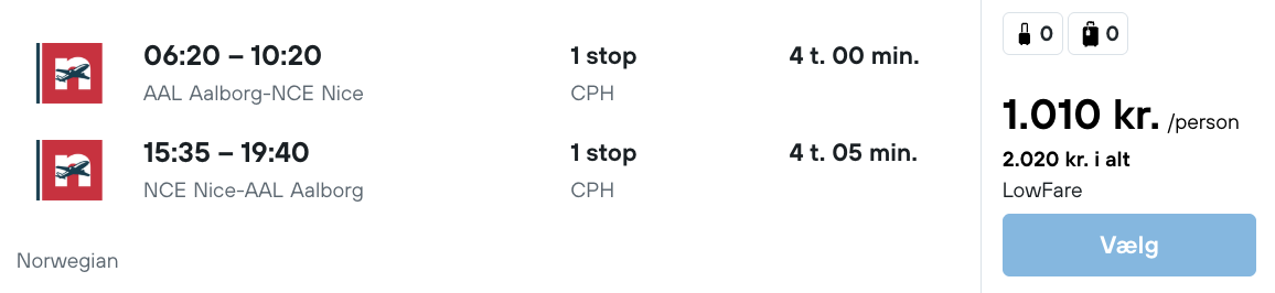 Flyprisen inkluderer kun en lille taske, men bagage kan tilkøbes.
