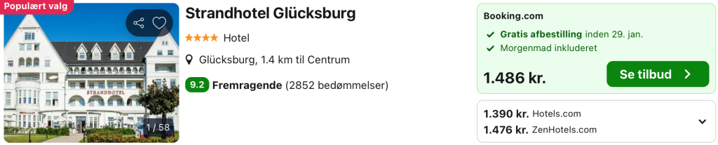 Vi har taget udgangspunkt i et ophold fra den 1. – 2. februar på Strandhotel Glücksburg, der er et elegant og klassisk hotel beliggende direkte ved Flensborg Fjord i Nordtyskland. Hotellet byder på en luksuriøs og afslappet atmosfære med lyse og stilfuldt indrettede værelser, mange med udsigt over vandet. Gæsterne kan nyde hotellets wellnessområde, som inkluderer sauna og spa-behandlinger, samt en førsteklasses restaurant, der serverer lokale og internationale specialiteter. Med sin unikke beliggenhed ved stranden og fokus på kvalitet og komfort er Strandhotel Glücksburg et ideelt valg for en romantisk getaway eller en afslappende ferie.