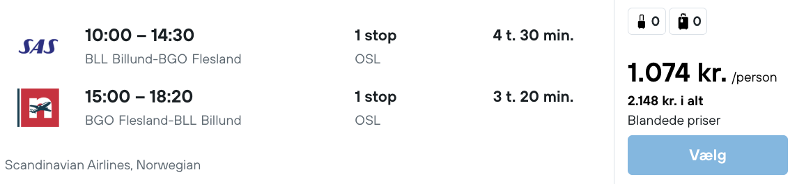 Flyprisen inkluderer kun en lille taske, men bagage kan tilkøbes.