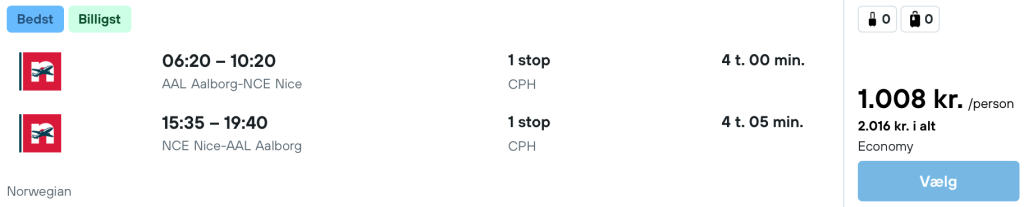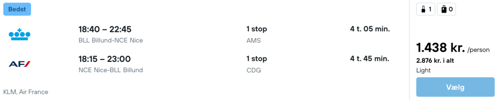 På vores flysøgemaskine har vi fundet billige flybilletter fra København, Aalborg og Billund til Nice.