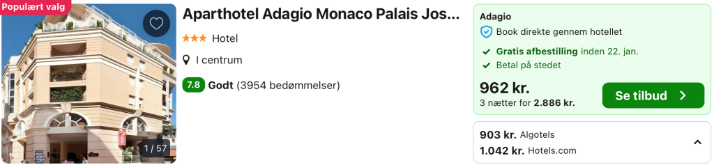 4 dages forlænget weekend i Monaco for kun 2.085,- per person inkl. fly og flot lejlighedshotel med god beliggenhed!