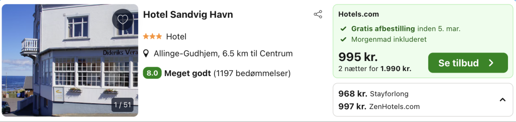 Forlænget weekend på Bornholm for kun 968,- inkl. flot hotel med morgenmad og fantastisk beliggenhed!