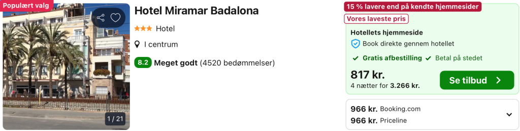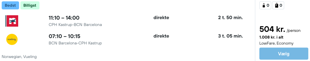 Hvis rejsen er med “Vis rejse” link, så er der tale om en pakkerejse, hvor fly og hotel bestilles på en gang.