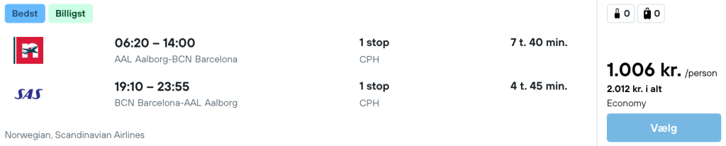 Flyprisen inkluderer kun en lille taske, men bagage kan tilkøbes.