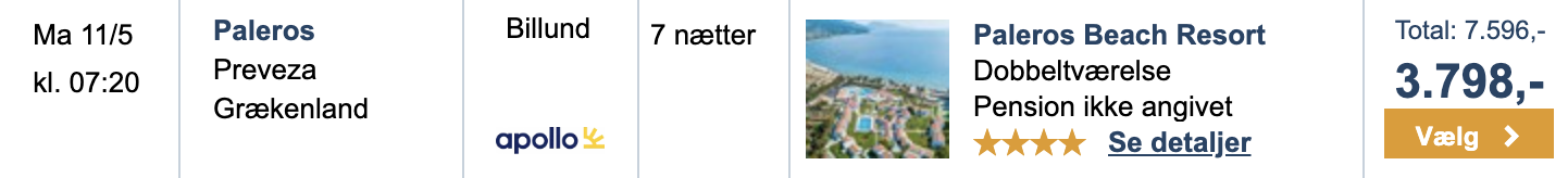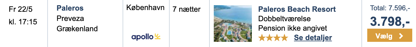 Hos Travelmarket har vi hos Apollo har vi fundet et gode tilbud fra Billund og København til Paleros!