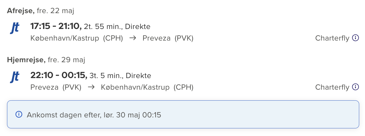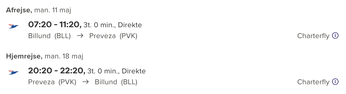 Hvis rejsen er med “Vis rejse” link, så er der tale om en pakkerejse, hvor fly og hotel bestilles på en gang.