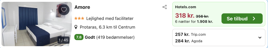 Hvis rejsen er med “Vis rejse” link, så er der tale om en pakkerejse, hvor fly og hotel bestilles på en gang.