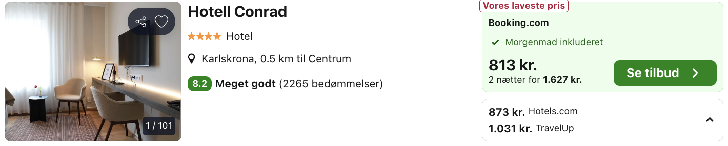 Midt i den charmerende kystby Karlskrona ligger Hotell Conrad – et hyggeligt og personligt hotel med en hjemlig atmosfære. Her bor du tæt på byens historiske centrum, marinaen og det smukke skærgårdsmiljø, som Karlskrona er kendt for.