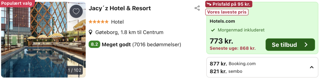 Hotellet byder på flere restauranter, barer, en spektakulær tagterrasse med poolklub og et afslappende spaområde. Centralt placeret, tæt på Liseberg og Universeum, tilbyder Jacy’z både luksus og let adgang til byens attraktioner.