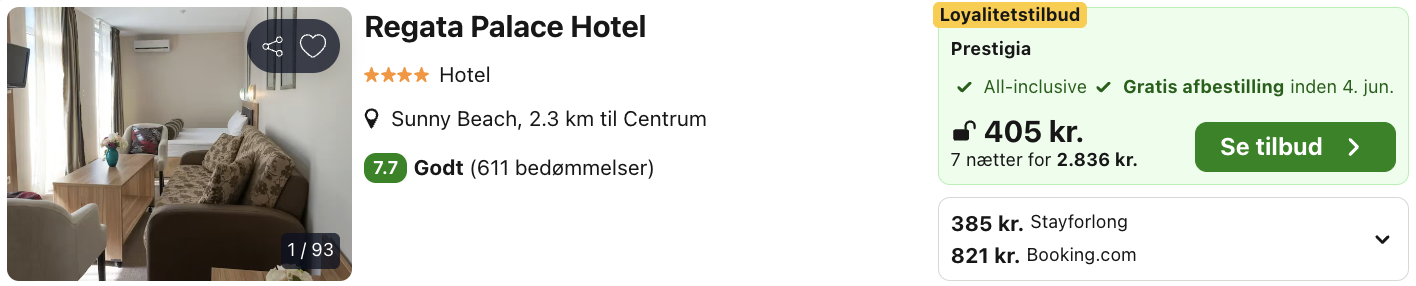 Hvis rejsen er med “Vis rejse” link, så er der tale om en pakkerejse, hvor fly og hotel bestilles på en gang.