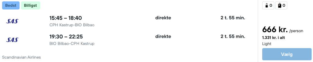 På vores flysøgemaskine har vi fundet billige billetter fra København til Bilbao i Baskerlandet.