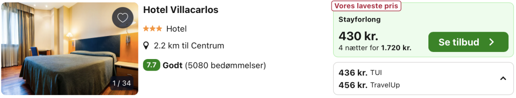 Hvis rejsen er med “Vis rejse” link, så er der tale om en pakkerejse, hvor fly og hotel bestilles på en gang.