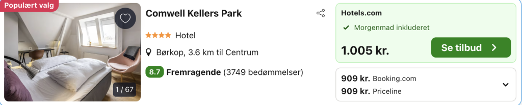 Den samlede pris for opholdet er 909,- for 2 personer i et dobbeltværelse, hvilket svarer til 455,- per person. Rejs365 er ikke et rejsebureau, men en rejseside, der finder gode tilbud! – Vi modtager kommission, men det påvirker ikke din pris! Læs mere her |