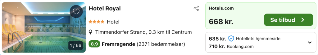 Hotel Royal ved Timmendorfer Strand er en perfekt destination for dem, der søger et elegant, afslappende og luksuriøst ophold ved Østersøen. Med sin fantastiske beliggenhed, komfortable faciliteter og uforlignelige service, er dette hotel et ideelt valg for en uforglemmelig ferie i et af Tysklands smukkeste kystområder.