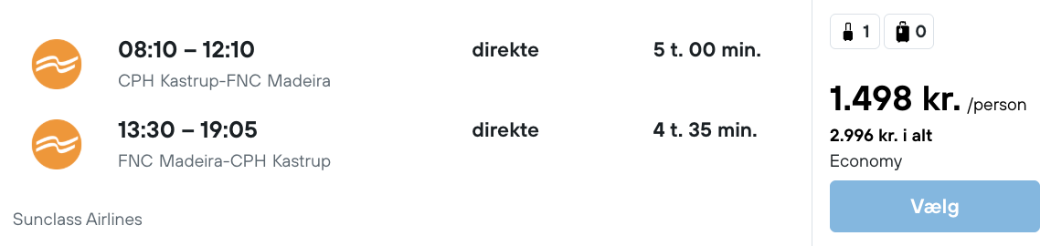 På vores flysøgemaskine har vi fundet billige fly fra København til Madeira: