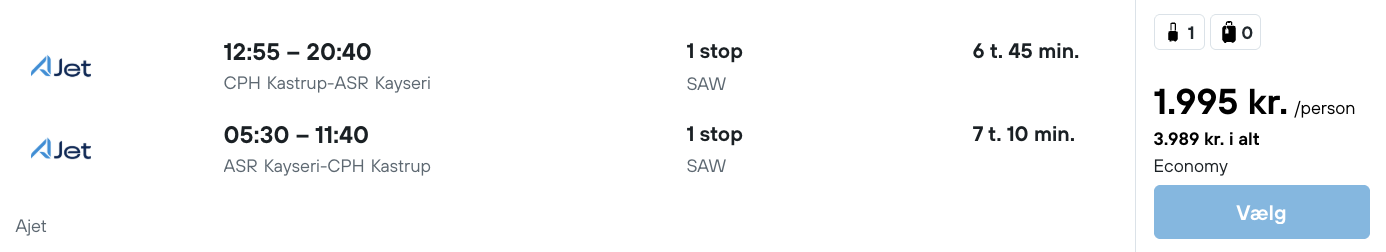 På vores flysøgemaskine har vi fundet billige billetter fra København til Kappadokien: