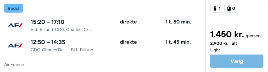 På vores flysøgemaskine har vi fundet billige flybilletter fra København og Billund til Paris.