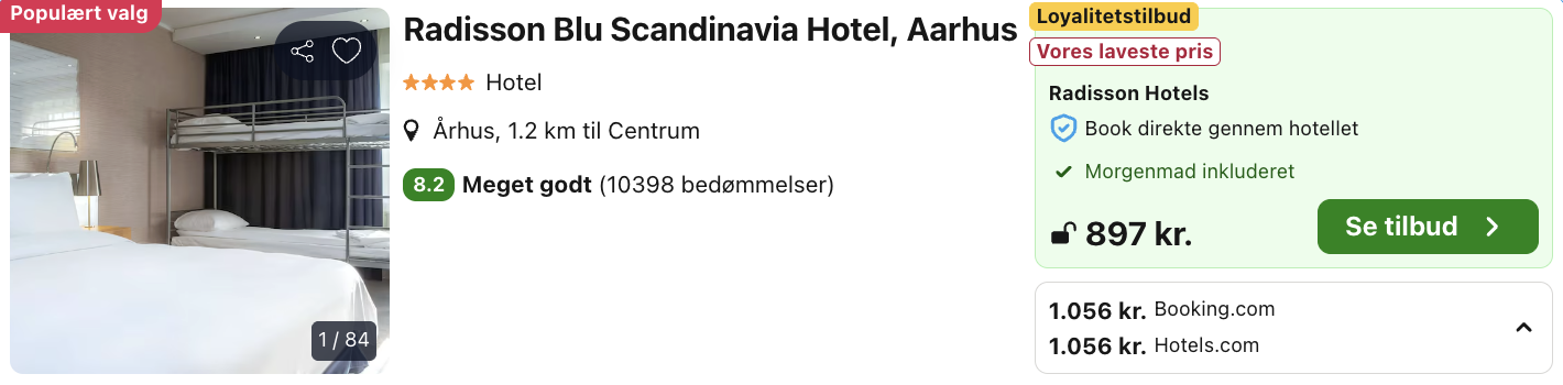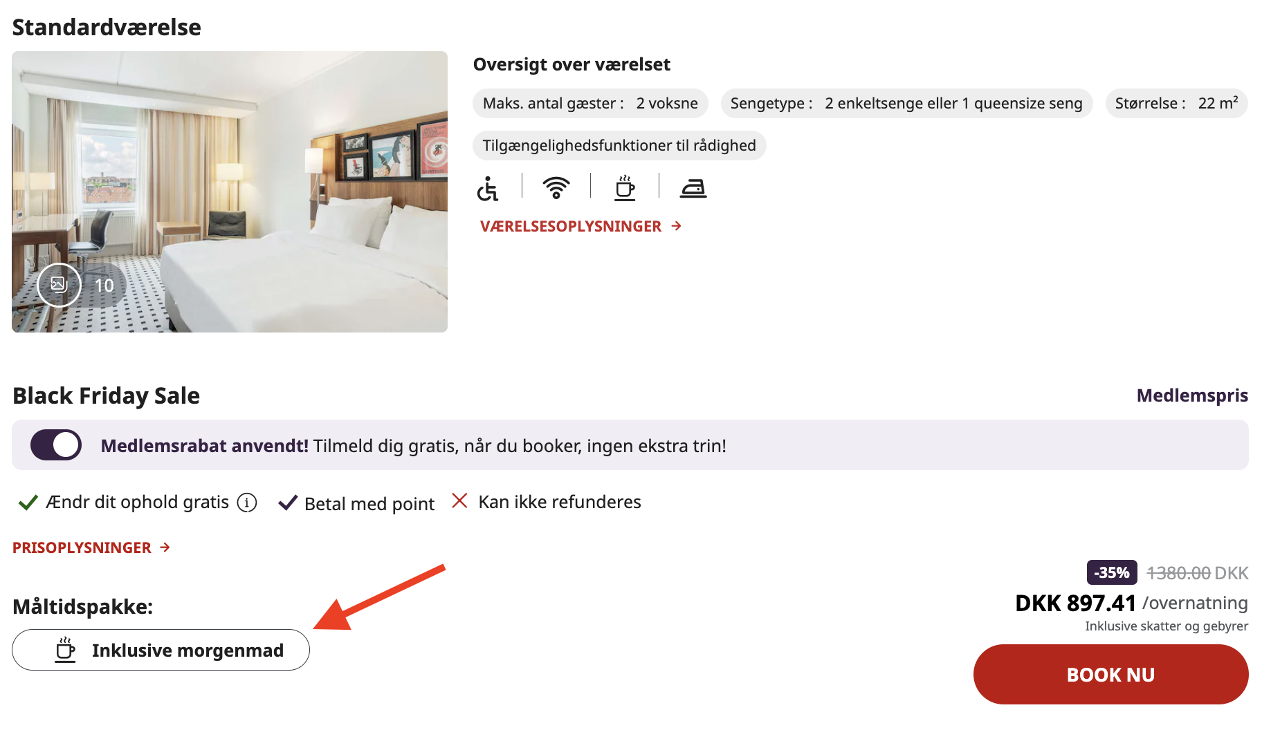 Vælg hotellets egen hjemmeside og derefter opret en gratis bruger for at opnå den bedste pris.