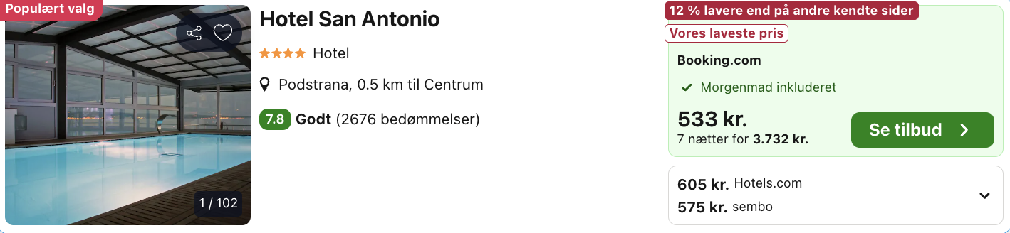 1 uge i Podstrana for kun 2.506,- per person inkl. direkte fly og hotel med pool, morgenmad og god beliggenhed!