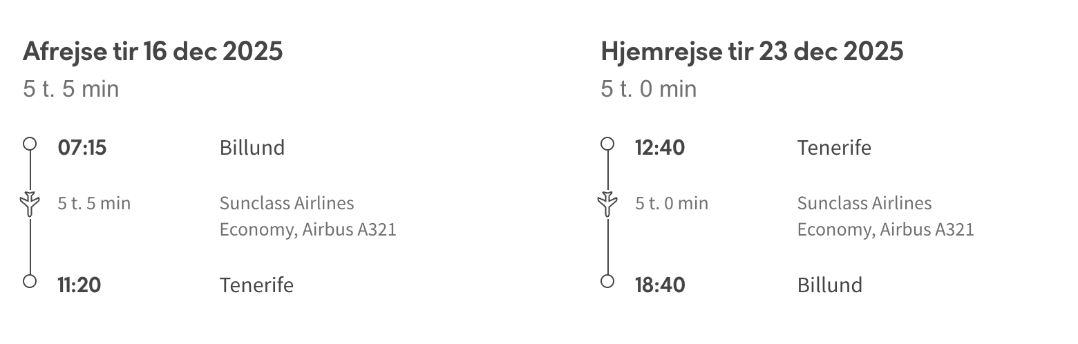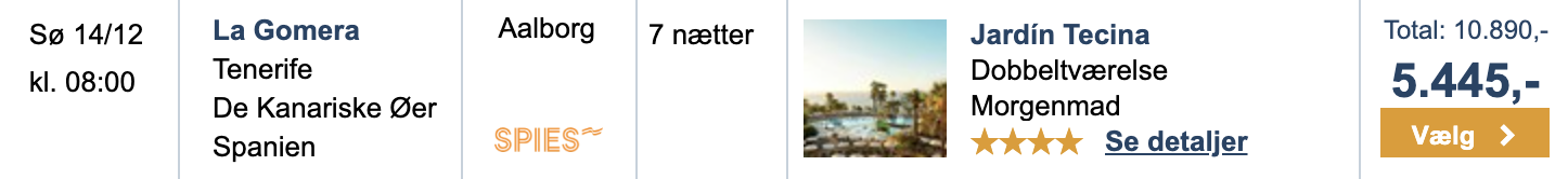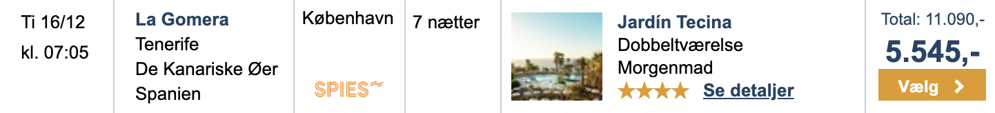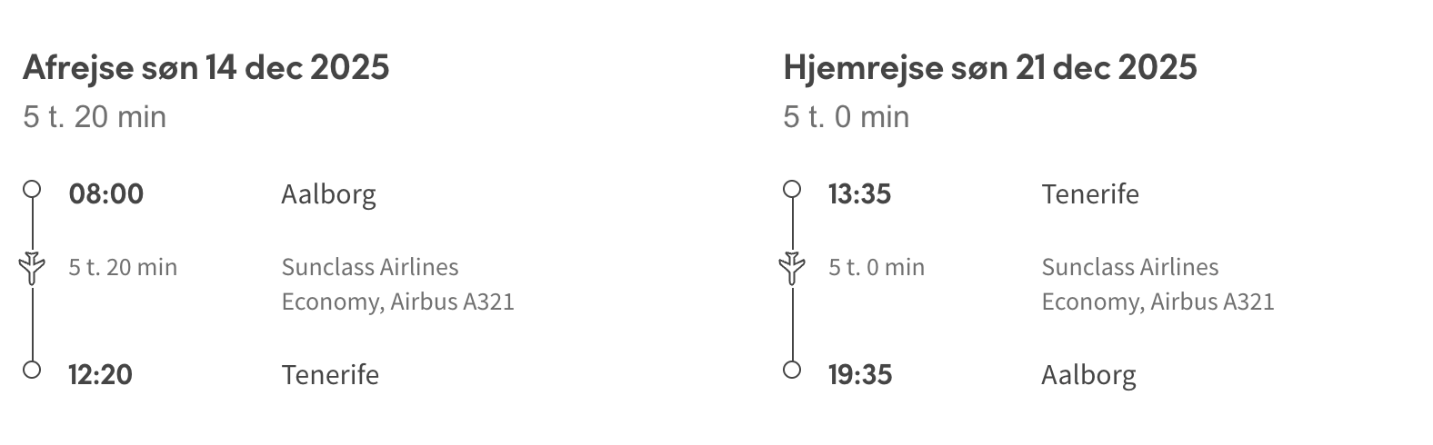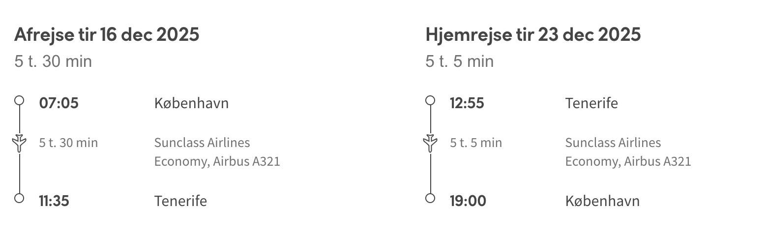 Vær opmærksom på at ankomst og afrejse er til/fra Tenerife.