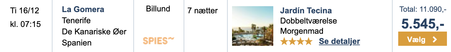 Hos Travelmarket med Spies har vi fundet gode tilbud fra Aalborg, Billund og København til La Gomera.