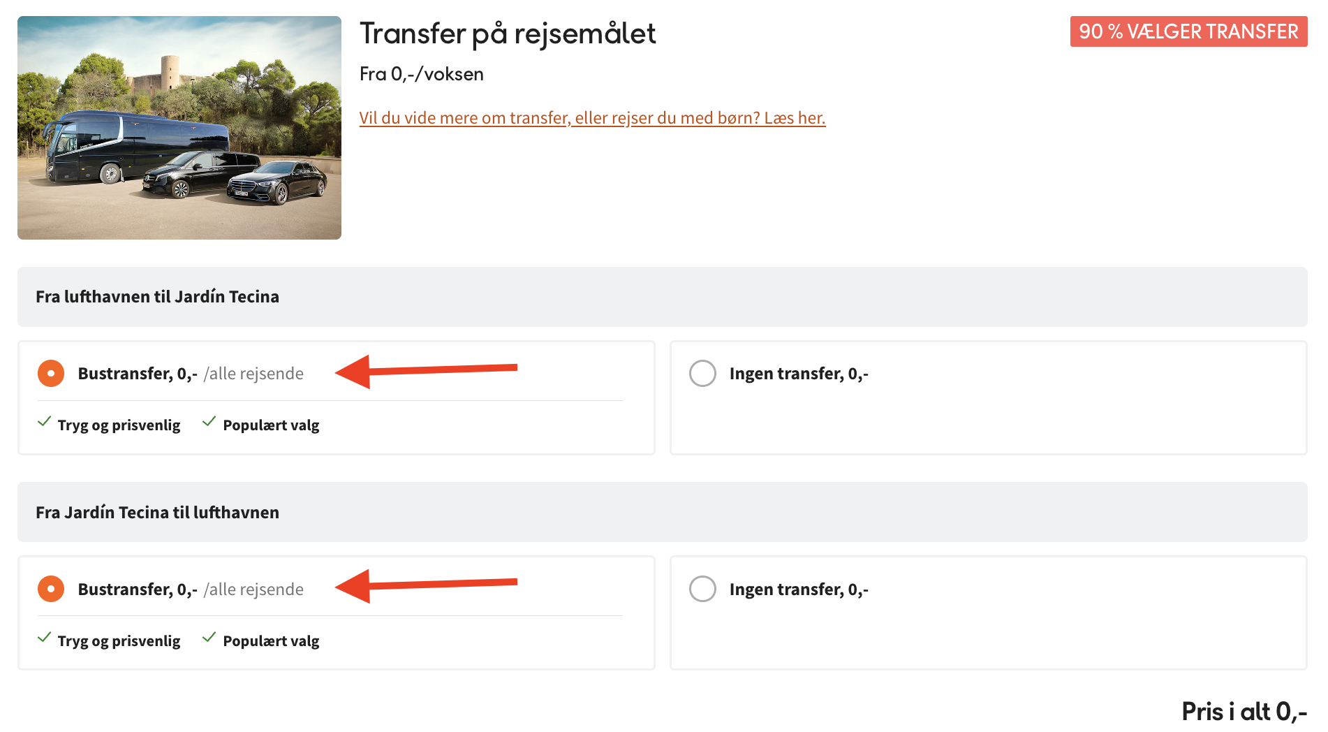 Transfer kan bestilles sammen med rejsen hos Spies.