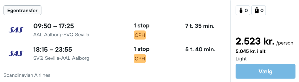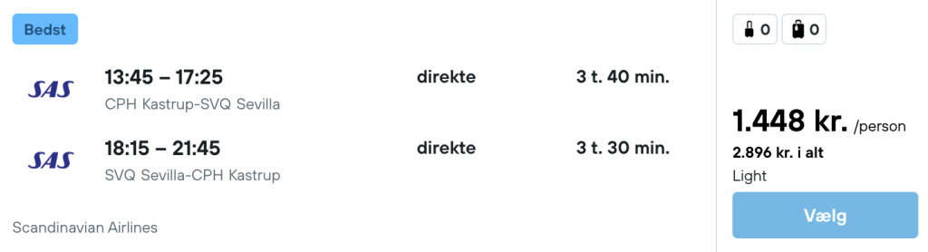 Flyprisen inkluderer kun en lille taske, men bagage kan tilkøbes.