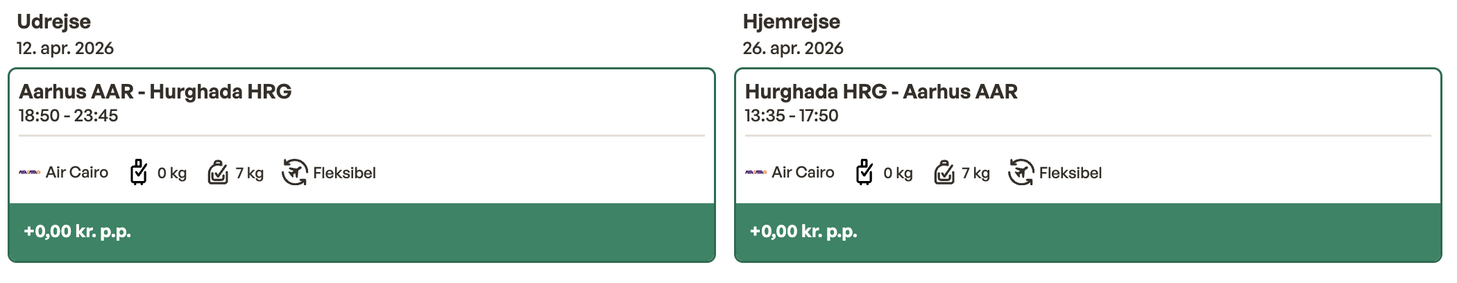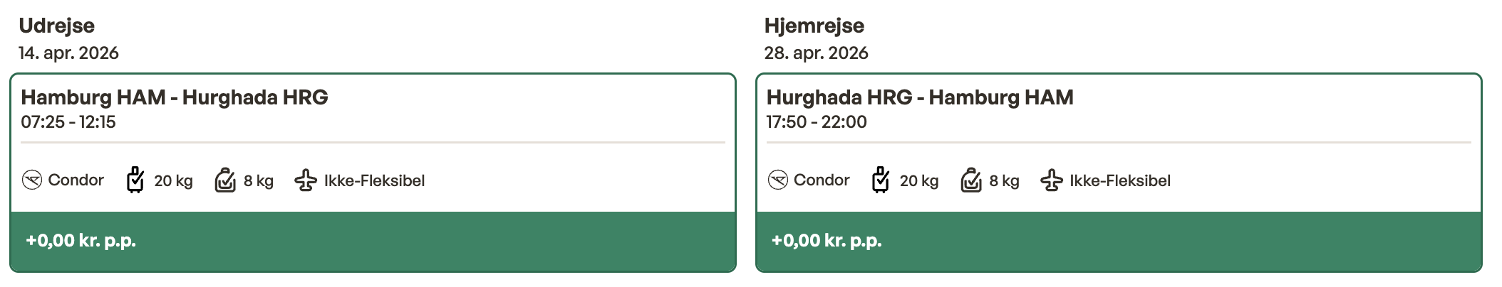 Hvis rejsen er med “Vis rejse” link, så er der tale om en pakkerejse, hvor fly og hotel bestilles på en gang.