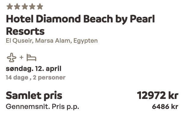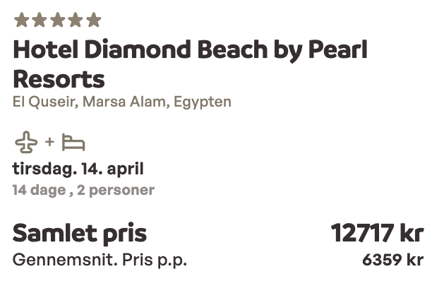 | Bemærk: Sunweb viser den samlede pris for 2 personer.