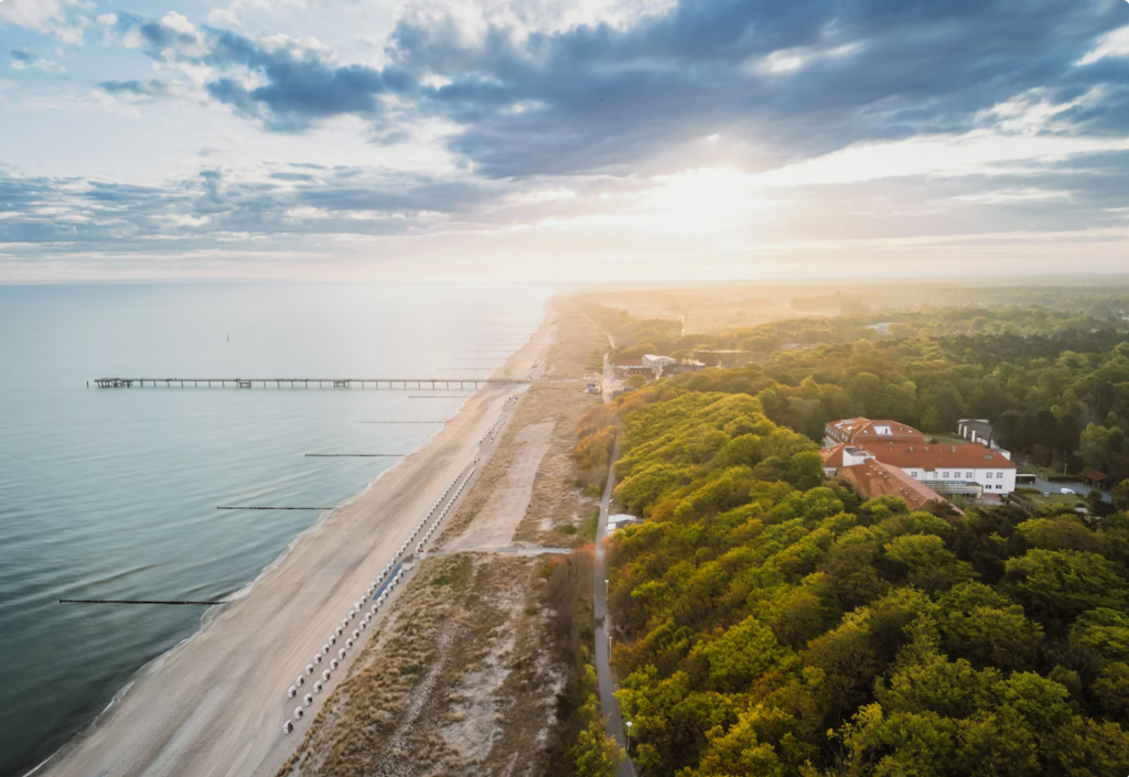 IFA Graal-Müritz Hotel & Spa Tagungen ligger i den fredfyldte kystby Graal-Müritz ved Østersøen, omgivet af velduftende skov og kun få skridt fra den brede sandstrand. Hotellet har en rolig stemning, hvor moderne værelser og lyse suiter skaber en behagelig base tæt på havet. Den store wellnessafdeling giver en følelse af ro med indendørs pool, saunaer og behandlinger, som gør det let at koble helt af mellem strandture og naturoplevelser. Restauranten byder på regionale retter med fokus på friske råvarer, og de grønne omgivelser giver en afslappet atmosfære dagen igennem. Hotellets mødefaciliteter gør det muligt at kombinere arbejde og nærheden til naturen på en måde, der føles både inspirerende og afstressende, og beliggenheden ved Østersøkysten gør stedet til et oplagt valg for en rejse, hvor strandliv og komfort går hånd i hånd.