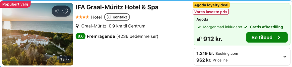 Bemærk: Den samlede pris for weekendopholdet er 912,- for 2 personer i et dobbeltværelse, hvilket svarer til 456,- per person. Rejs365 er ikke et rejsebureau, men en rejseside, der finder gode tilbud! – Vi modtager kommission, men det påvirker ikke din pris! Læs mere her