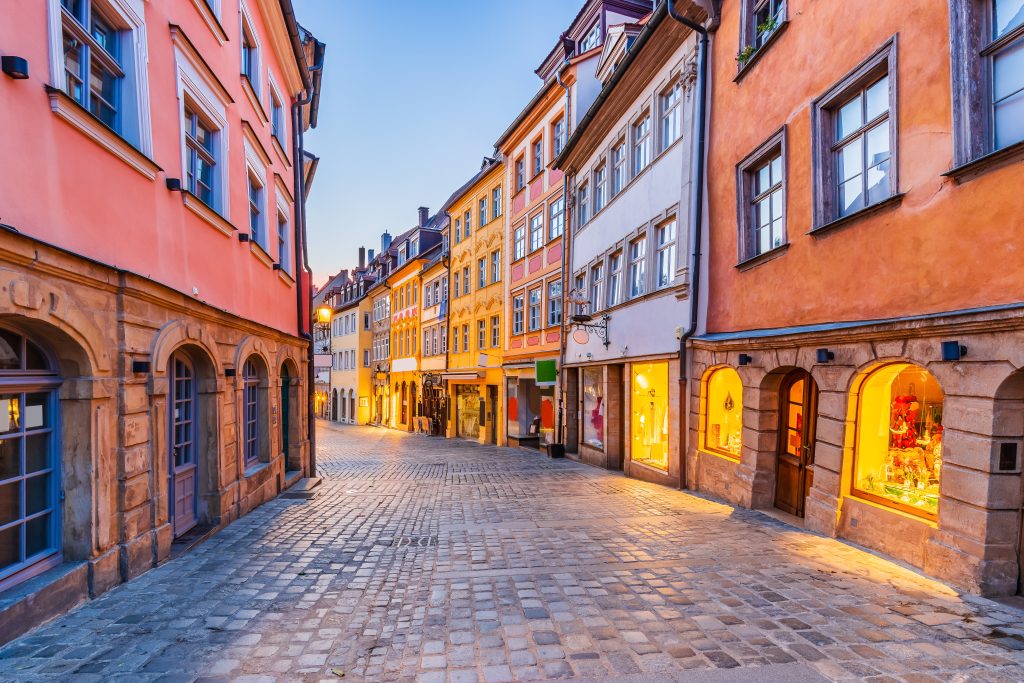 Bamberg er en stemningsfuld og historisk by i det nordlige Bayern, hvor gamle brostensgader, bindingsværkshuse og floden Regnitz danner en eventyrlig kulisse. Byens gamle centrum er optaget på UNESCOs verdensarvsliste og byder på imponerende arkitektur med det smukke Altes Rathaus, der ligger midt på en bro over floden. Domkirken med sine fire tårne og de charmerende kvarterer som Klein-Venedig, hvor små fiskerhuse spejler sig i vandet, giver byen en romantisk atmosfære. Bamberg er også kendt for sin unikke røgøl, Rauchbier, som serveres på de hyggelige bryggerier og biergartens. Med sin blanding af kultur, historie og livlig stemning er Bamberg et oplagt rejsemål for en weekendtur eller som del af en rundrejse i det sydlige Tyskland, hvor middelalderstemning og tysk gæstfrihed går hånd i hånd.