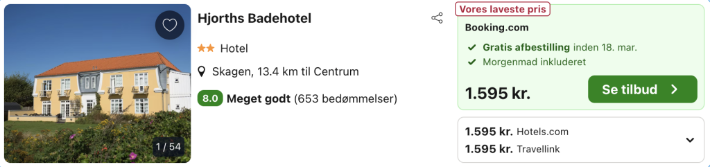 Hjorths Badehotel er et klassisk og stemningsfuldt badehotel beliggende midt i det smukke klitlandskab ved Kandestederne i Nordjylland, tæt på Skagen. Hotellet tilbyder en autentisk oplevelse med lyse, enkelt indrettede værelser og en atmosfære, der emmer af ro og fordybelse. Her kan du slappe af i naturens stille omgivelser, nyde gåture i klitterne og dufte havet tæt på.