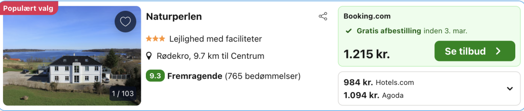 Vælg Booking.com på trivago og log ind / opret en gratis bruger. Derved opnås den billigste pris.