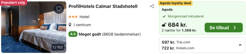 Vi har taget udgangspunkt i et ophold fra den 2. – 4. januar på ProfilHotels Calmar Stadshotell, der er et charmerende og historisk hotel beliggende i hjertet af Kalmar, blot få skridt fra byens hyggelige stræder, butikker og kulturelle seværdigheder. Hotellet er indrettet i en klassisk bygning fra begyndelsen af 1900-tallet og formår at kombinere gammeldags elegance med moderne komfort, hvilket giver en stemningsfuld og autentisk atmosfære.