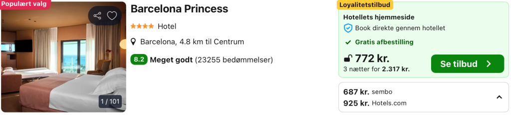 Hvis rejsen er med “Vis rejse” link, så er der tale om en pakkerejse, hvor fly og hotel bestilles på en gang.