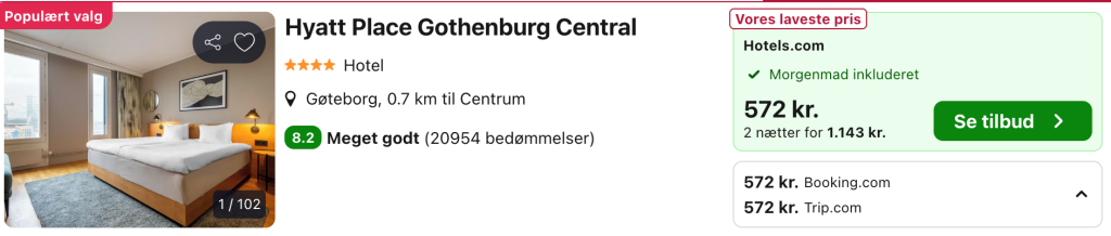 Bemærk: Den samlede pris for hotellet er 1.143,- for 2 personer, hvilket svarer til 572,- per person. Rejs365 er ikke et rejsebureau, men en rejseside der finder gode tilbud! – Vi modtager kommission, men det påvirker ikke din pris! Læs mere her |