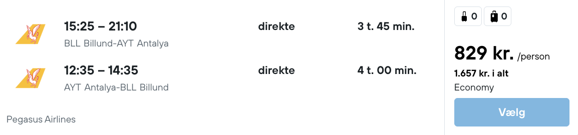 På vores flysøgningsmaskine har vi fundet billige billetter fra København og Billund til Antalya: