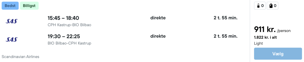 Vi har fundet billige flybilletter fra København til Bilbao: