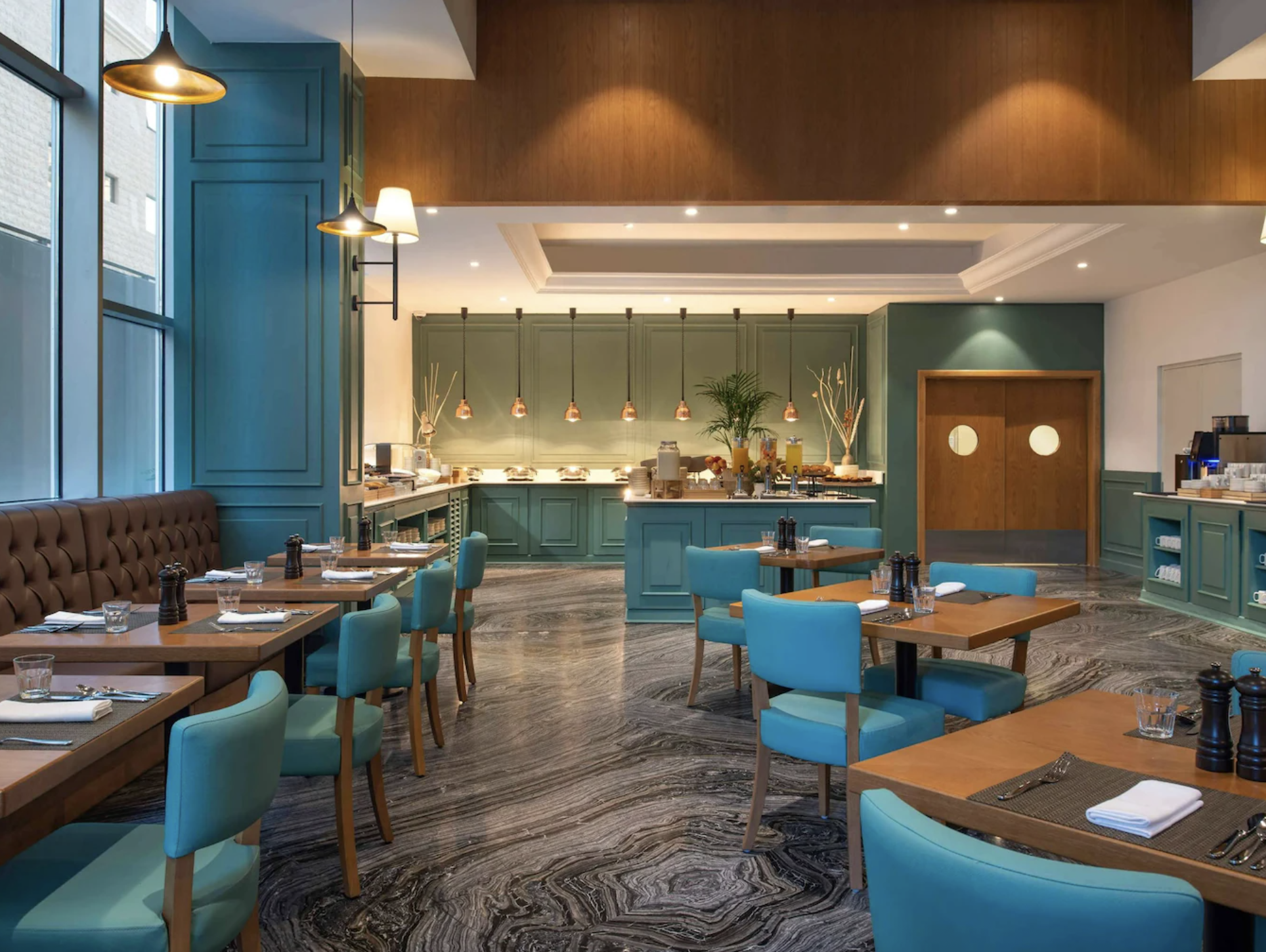 På hotellet findes en restaurant, hvor der serveres morgenbuffet og internationale retter, samt en bar og loungeområde, hvor gæsterne kan slappe af efter dagens oplevelser. Hotellet har egen pool.