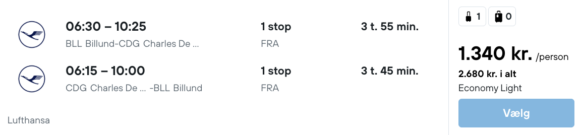 Flyprisen inkluderer kun en lille taske, men bagage kan tilkøbes.