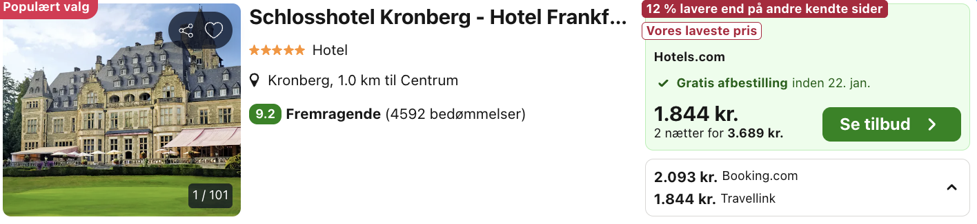 Forlænget weekend på Schlosshotel Kronberg for kun 1.845,-