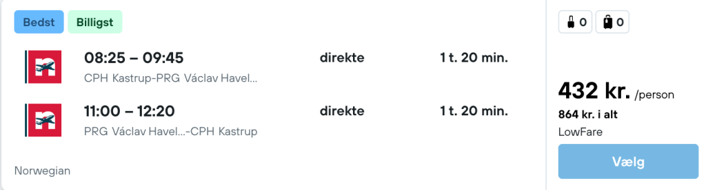Hvis rejsen er med “Vis rejse” link, så er der tale om en pakkerejse, hvor fly og hotel bestilles på en gang.
