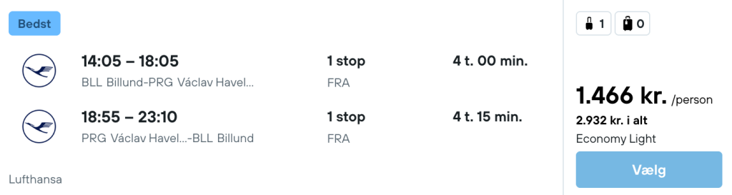 Flyprisen inkluderer kun en lille taske, men bagage kan tilkøbes.