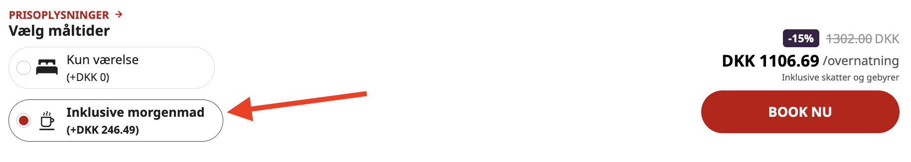 Husk at tilvælge morgenmad.