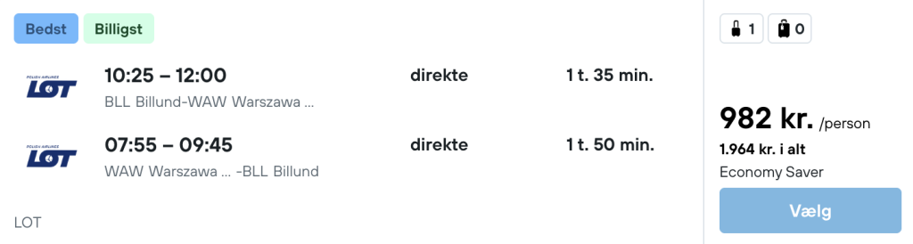 På vores flysøgningsmaskine har vi fundet billige flybilletter fra København og Billund til Warszawa: