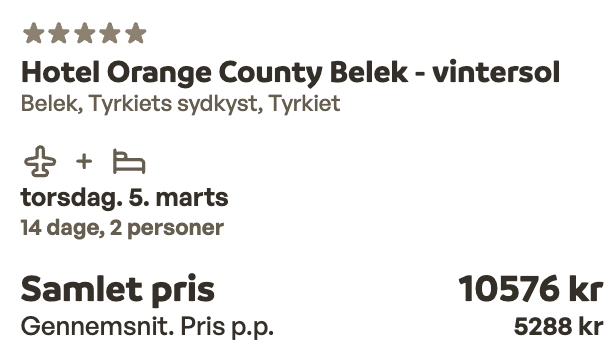 Bemærk: Sunweb viser den samlede pris for 2 personer.