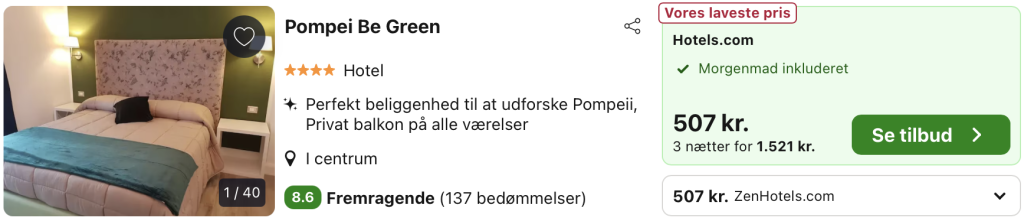 4 dages forlænget weekend ved Pompeji for kun 1.859,- per person inkl. fly og godt 4-stjernet hotel!