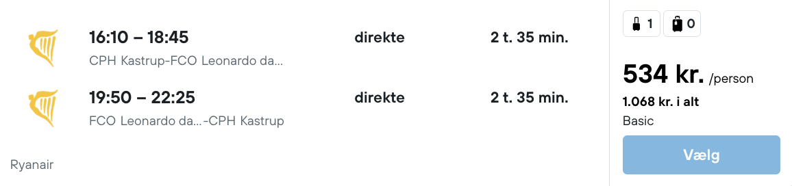 Flyprisen inkluderer kun en lille taske, men bagage kan tilkøbes.