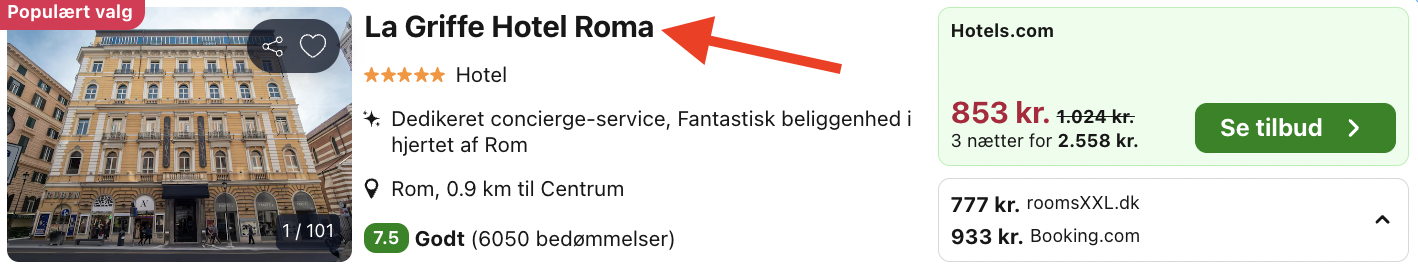 Tryk på “La Griffe Hotel Roma” og vælg Algotels for at opnå den bedste pris.